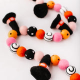 - Garlands measure 8 ft. in length: (includes additional twine on each side): 42 felt balls and 6 witch hats by side measures approximately 4.5 ft.